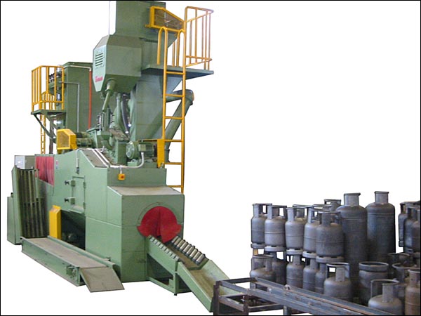 Máy phun bi, phun cát làm sạch vỏ bình ga TG, Sản phẩm được thiết kế chuyên dụng để làm sạch vỏ bình ga sản xuất mới và sơn lại.